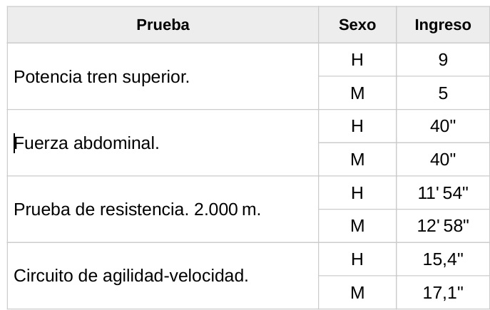 Las personas aspirantes deberán realizar todas las pruebas utilizando vestuario deportivo.